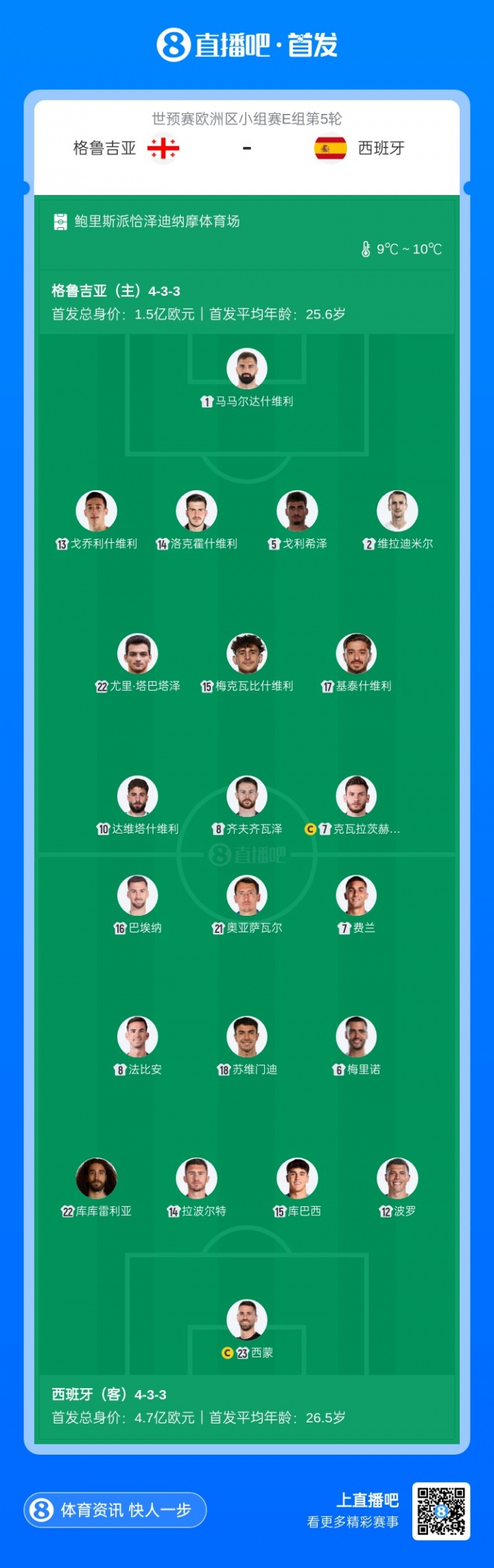 2025-11-16 00:00:39西班牙客战格鲁吉亚首发:费兰、巴埃纳先发,亚马尔佩德里伤缺