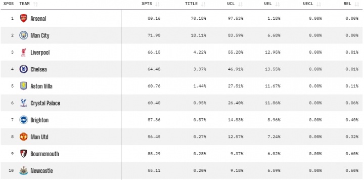 2025-11-23 08:00:54曼城本轮输纽卡!大数据预测英超夺冠概率:阿森纳升至70.18%领跑